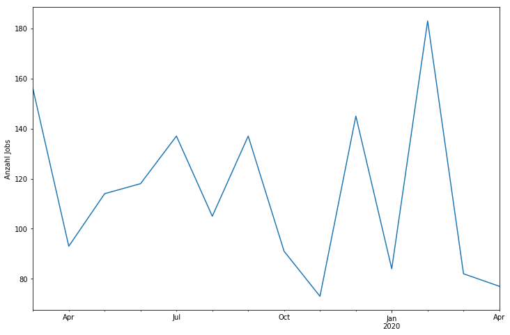 Der Einbruch im Januar mit Peak im Februar liegt daran, dass ich im Januar fast nicht abgefragt habe und viele Jobs erst im Februar „entdeckt“. Das ist jetzt das erste Jahr und die Abfragen waren noch nicht so regelmäßig, daher möchte ich das nicht groß interpretieren. Ich muss das mal auf eine automatische Abfrage umstellen.